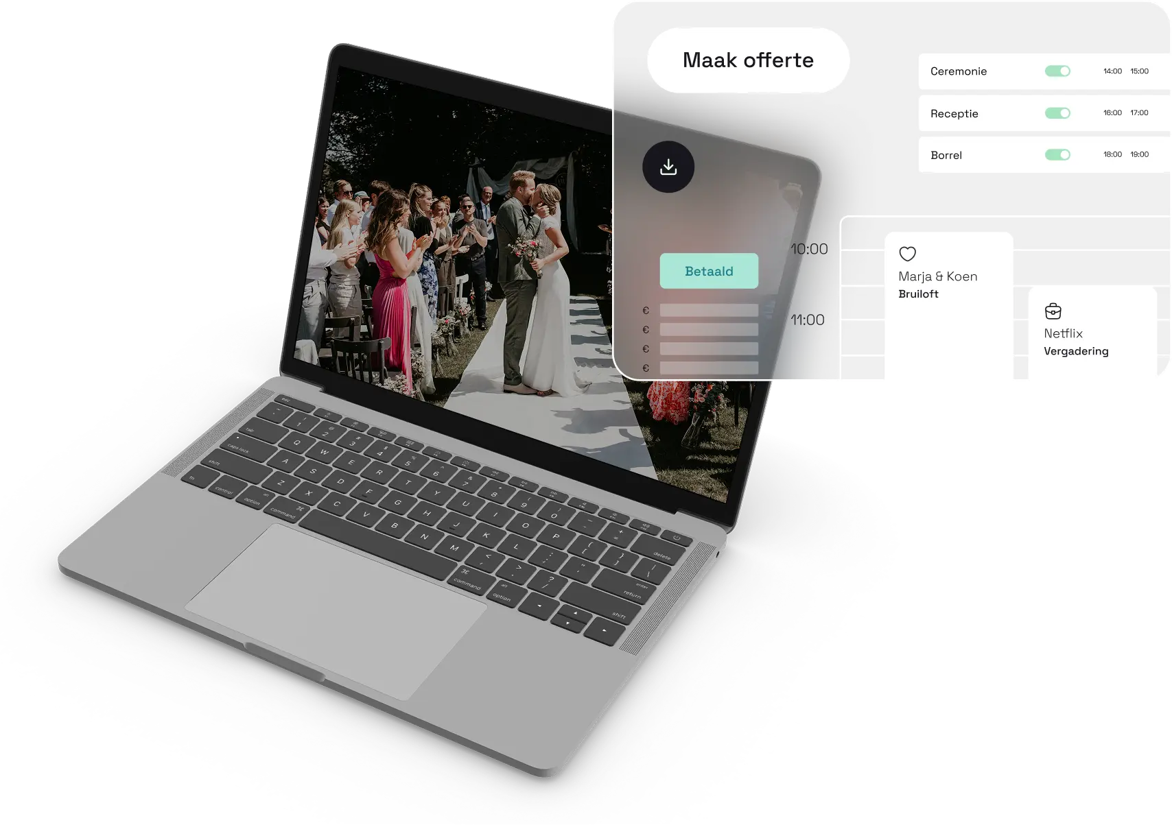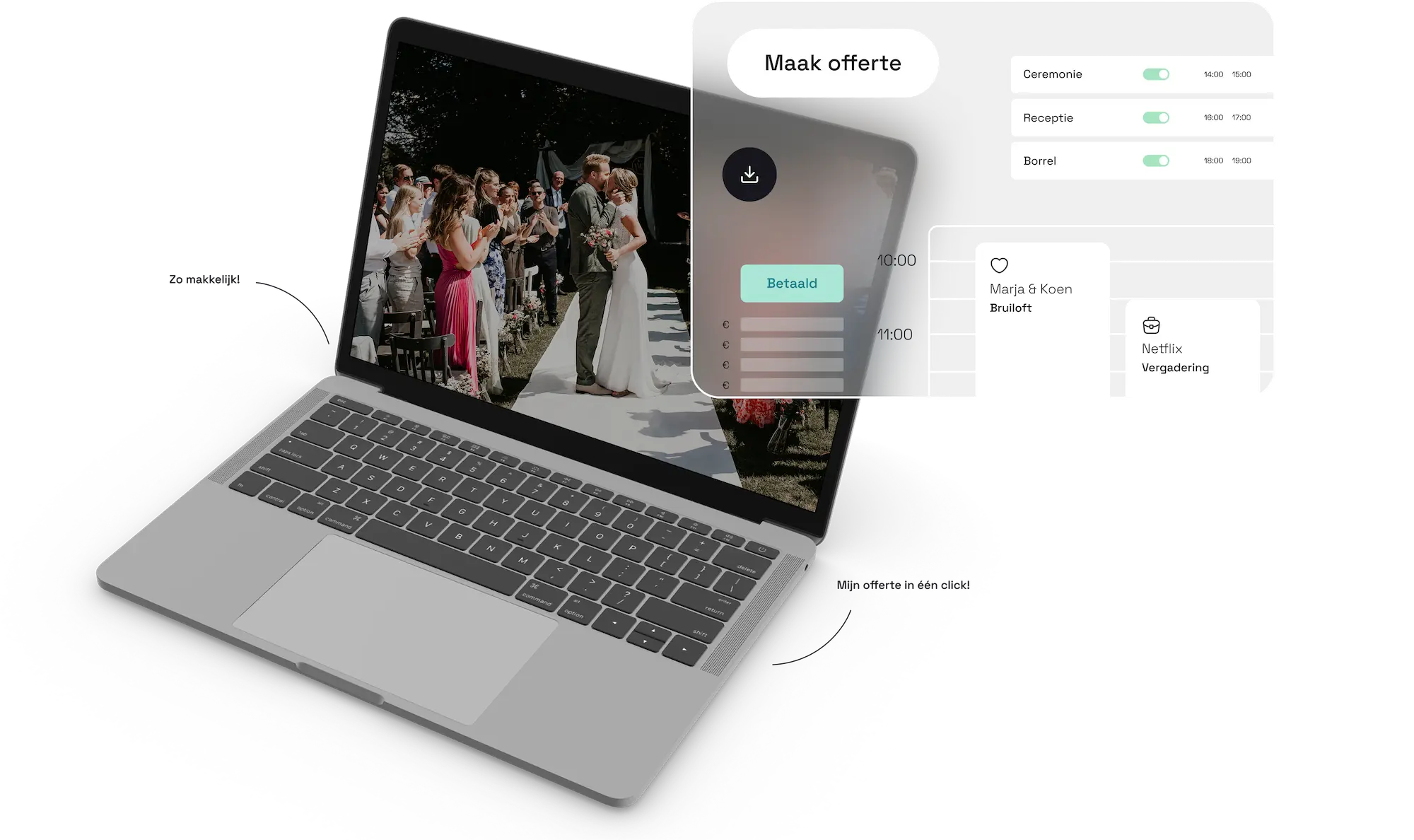 De ultieme oplossing voor jouw trouw-, event- of vergaderlocatie. Stroomlijn, automatiseer en verhoog sales door next-level gastbeleving.